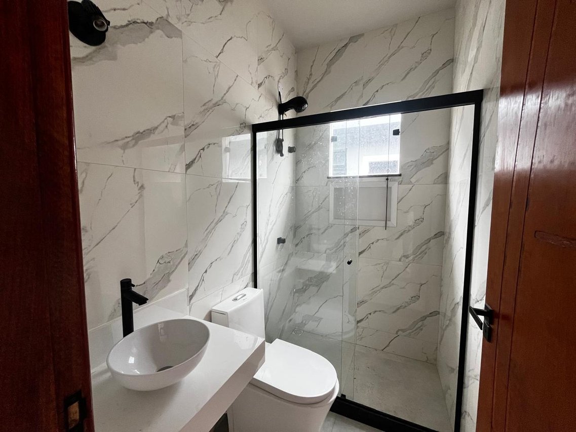 A casa possui 2 quartos (sendo uma suíte), sala ampla, cozinha americana com bancada de granito, banheiro social, área de serviço.